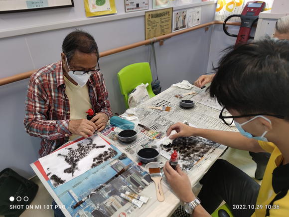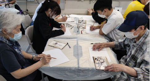 本會會透過心靈鷄湯-認識/管理/舒緩壓力等課堂讓長者認識什麽是壓力, 有壓力是正常, 並教導長者如何管理它, 運用不同途徑, 將內在壓力予以舒緩、表達, 當中有水墨漫畫、和諧粉彩、手工肥皂、木扇彩繪等等課堂, 學生和長者一同上堂學習, 讓長幼共融積極互動。
